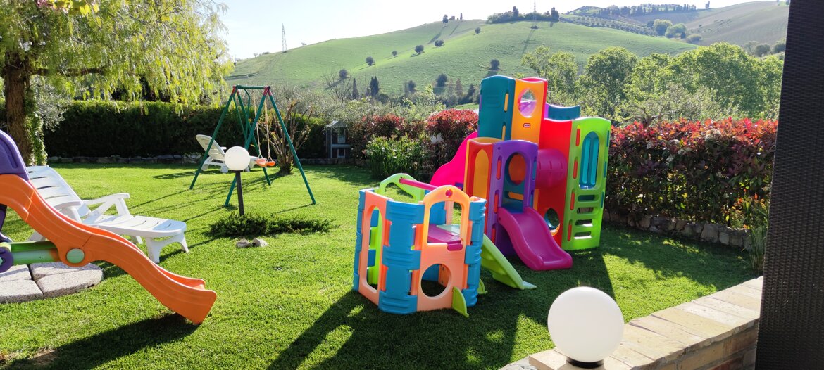 La dimora è immersa in un giardino completo di arredi da esterno dove poter godere della fresca brezza, distesi sotto gli ulivi secolari. Per il divertimento dei bambini è stata realizzata un'area attrezzata con giochi, tavoli e sedie.